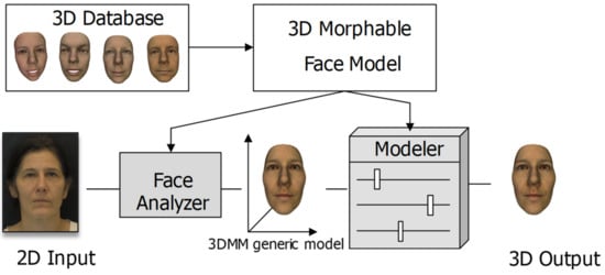 - Blanz, V.; Vetter, T. A morphable model for the synthesis of 3D faces. In Proceedings of the 26th Annual Conference on Computer Graphics and Interactive Techniques—SIGGRAPH’99, Los Angeles, CA, USA, 8–13 August 1999; pp. 187–194. [Google Scholar] [CrossRef]