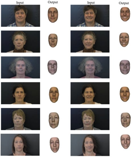- Li, T.; Bolkart, T.; Black, M.J.; Li, H.; Romero, J. Learning a model of facial shape and expression from 4D scans. ACM Trans. Graph. 2017, 36, 1–17. [Google Scholar] [CrossRef]