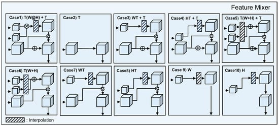 Figure 2 is a type of feature mixer. The attentive feature is divided into 10 cases, according to the processing method. The purpose of the feature mixer is to combine the characteristics of each axis, according to the shape of the feature of the time axis. The detailed formula is expressed in