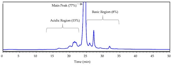 - Du, Y.; Walsh, A.; Ehrick, R.; Xu, W.; May, K.; Liu, H. Chromatographic analysis of the acidic and basic species of recombinant monoclonal antibodies. mAbs 2012, 4, 578–585. [Google Scholar] [CrossRef]