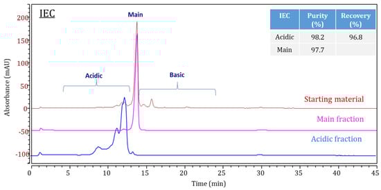 - Dada, O.O.; Jaya, N.; Valliere-Douglass, J.; Salas-Solano, O. Characterization of acidic and basic variants of IgG1 therapeutic monoclonal antibodies based on non-denaturing IEF fractionation. Electrophoresis 2015, 36, 2695–2702. [Google Scholar] [CrossRef] [PubMed]