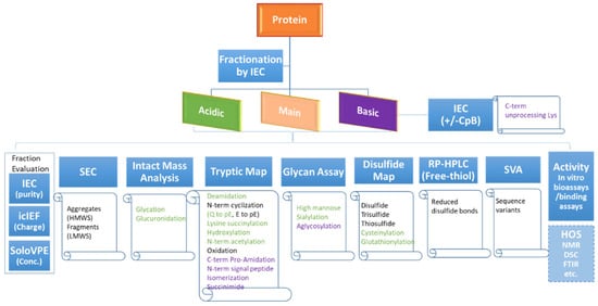 - Singh, S.K.; Kumar, D.; Malani, H.; Rathore, A.S. LC–MS based case-by-case analysis of the impact of acidic and basic charge variants of bevacizumab on stability and biological activity. Sci. Rep. 2021, 11, 2487–2498. [Google Scholar] [CrossRef]