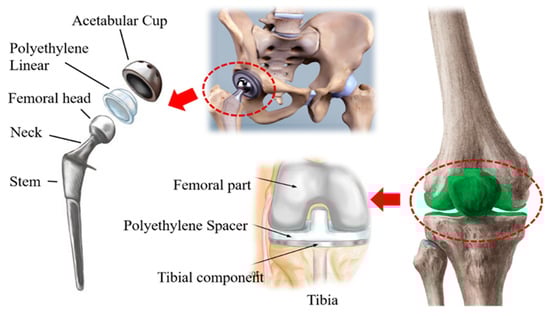 - Bradford, L.; Kurland, M.; Sankaran, H.; Kim, H.; Pruitt, L.; Ries, M. Early failure due to osteolysis in highly crosslinked ultra-high molecular weight polyethylene: A case report. J. Bone Jt. Surg. Am. 2004, 86, 1051–1056. [Google Scholar] [CrossRef]