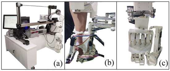 In the 21st century, the aged population has increased dramatically. Among elders, a considerable number of people suffer from stroke and related complications such as hemiplegia, disability, etc., which lead to problems in daily caring []. To restore self-care capabilities, stroke patients usually require a long rehabilitation period after surgery [,]. Patients’ needs at different rehabilitation stages vary, thus rehabilitation therapy should also be changed accordingly. To address this issue, human–machine interaction (HMI) technology is developed for rehabilitation exoskeletons [,,]. In brief, all HMI technologies serve three purposes, which are intention capture, intention recognition, and physical response [].