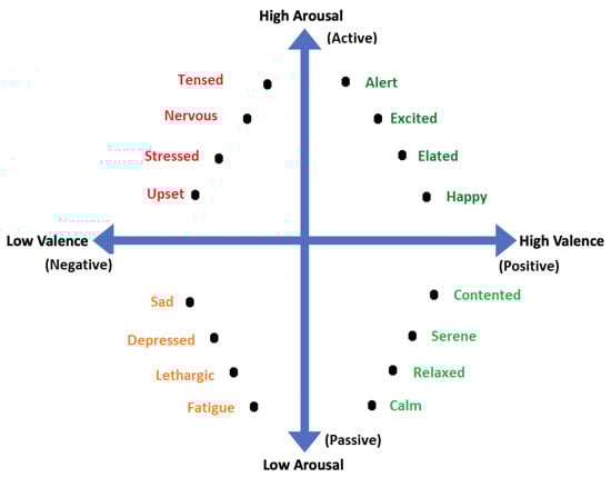 - Pinto, J.; Fred, A.; da Silva, H.P. Biosignal-based multimodal emotion recognition in a valence-arousal affective framework applied to immersive video visualization. In Proceedings of the 2019 41st Annual International Conference of the IEEE Engineering in Medicine and Biology Society (EMBC), Berlin, Germany, 23–27 July 2019; pp. 3577–3583. [Google Scholar]