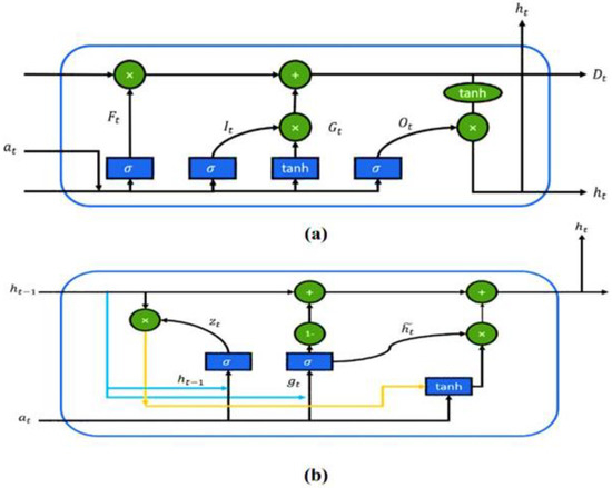 Comparison parameter between (a) LSTM and (b) GRU framework [35].