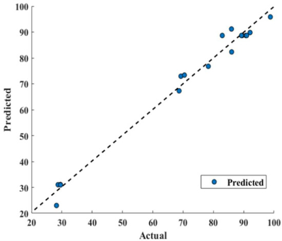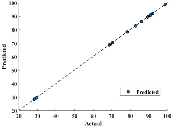 RSM model has reported 0.9844 correlation coefficient R2 that shows good fitting efficiency, as shown in Figure 9. However, GRU has shown superior efficiency (Figure 10) and reported 0.9999 R2. The values of mean absolute percentage error (MAPE), root mean square error (RMSE) and mean absolute error (MAE) for RSM model and GRU model have been reported in Table 5.