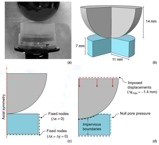 Null pore pressure was assumed in the lateral face, due to the conditions offered by the cylindrical molds, and in the portion of the upper face of the sample where the indenter did not shove the surface (Figure 1d). The spherical indenter was modeled as a rigid body.