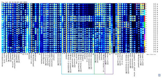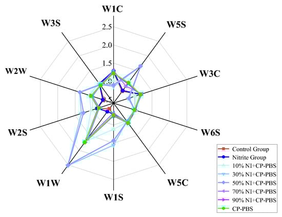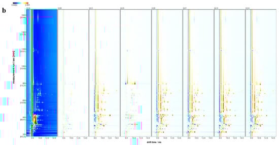 3.4.2. Analysis of Gas Phase Ion Migration Spectrum of Smoked Sausage Flavor Substances in the Different Treatment Groups