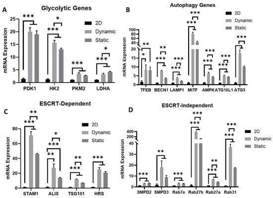 3.4. Metabolism, Autophagy, and EV Biogenesis Marker Expression