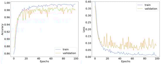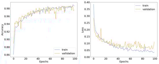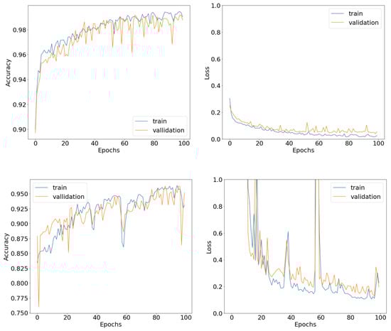 From Figure 4 we can conclude that both models converge after 100 epochs, having almost perfect accuracy results with the loss metric brought down to a minimum. Once again, we can see that the models avoid the overfitting effect after being fine-tuned.