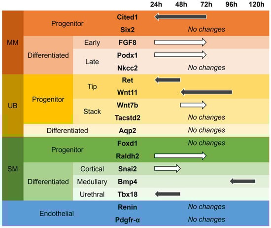 - Sebinger, D.D.R.; Unbekandt, M.; Davies, J.A. A novel, low-volume method for organ culture of embryonic kidneys that allows development of cortico-medullary anatomical organization. PLoS ONE 2010, 5, e10550. [Google Scholar] [CrossRef]