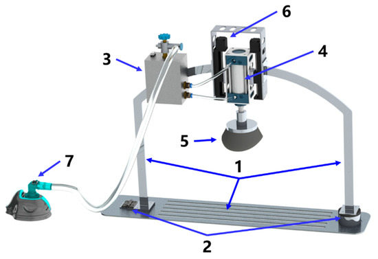 - Lightweight support structure (labeled 1 in Figure 1): the thin-walled support frame and lightweight aluminum alloy base plate with a slot were designed so that the patient can maintain a flat position when placed inside the support structure;