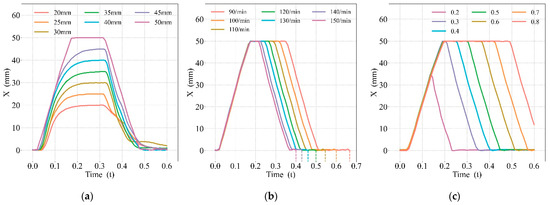 Based on the standard compression parameters, we changed one of either compression depth, duty cycle, or frequency, keeping the remaining two parameters as standard (e.g., changing the compression depth to 40 mm, keeping the duty cycle at 0.5 and frequency at 100 press/min). The prototype CPR machine was controlled to work in different situations according to different compression parameters. For each operating situation, we performed continuous compressions and collected 10 sets of compression waveforms for analysis. For experiments varying compression depth, we traversed 20 mm to 50 mm at 5 mm intervals. For experiments varying compression duty cycle, we traversed 0.2 to 0.8 at 0.1 intervals. For experiments varying compression frequency, we traversed 90 press/min to 150 press/min at 10 press/min intervals.