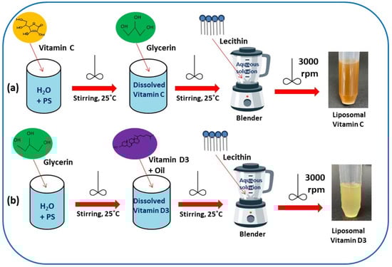 Illustration of the liposome preparation method: (a) liposomal vitamin C, and (b) liposomal vitamin D3.