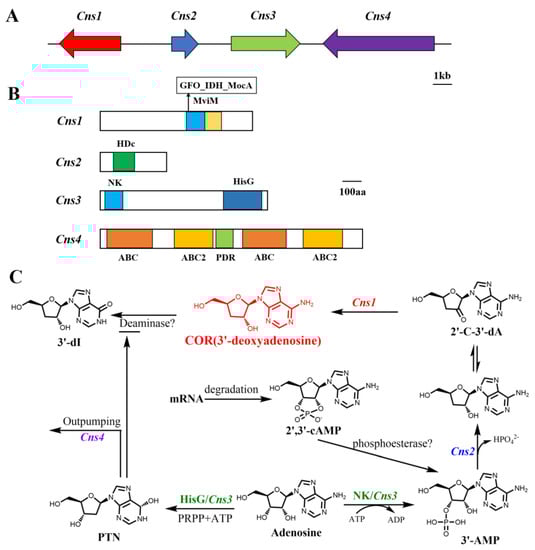 - Xia, Y.; Luo, F.; Shang, Y.; Chen, P.; Lu, Y.; Wang, C. Fungal Cordycepin Biosynthesis Is Coupled with the Production of the Safeguard Molecule Pentostatin. Cell Chem. Biol. 2017, 24, 1479–1489. [Google Scholar] [CrossRef] [PubMed] [Green Version]