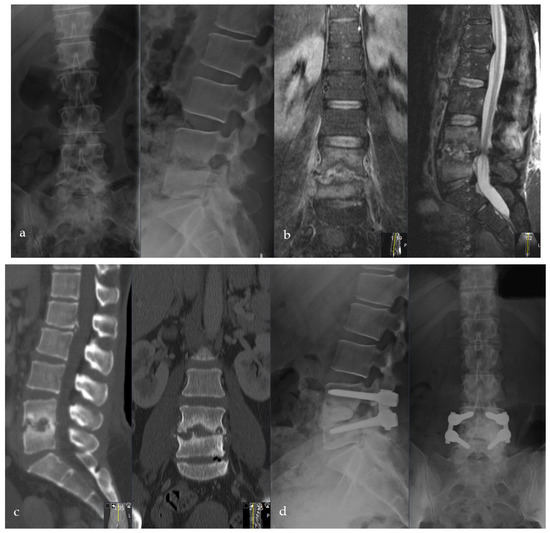 - Vcelak, J.; Chomiak, J.; Toth, L. Surgical treatment of lumbar spondylodiscitis: A comparison of two methods. Int. Orthop. 2014, 38, 1425–1434. [Google Scholar] [CrossRef]