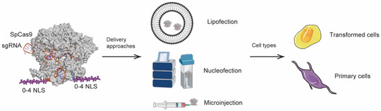 - Kim, S.; Kim, D.; Cho, S.W.; Kim, J.; Kim, J.S. Highly efficient RNA-guided genome editing in human cells via delivery of purified Cas9 ribonucleoproteins. Genome Res. 2014, 24, 1012–1019. [Google Scholar] [CrossRef] [Green Version]