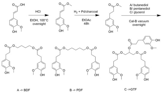 3.1. Synthesis of the Additives Based on Ferulic Acid
