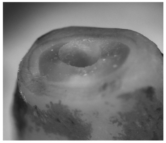 - Milani, A.S.; Froughreyhani, M.; Rahimi, S.; Jafarabadi, M.A.; Paksefat, S. The effect of root canal preparation on the development of dentin cracks. Iran. Endod. J. 2012, 7, 177–182. [Google Scholar] [PubMed]