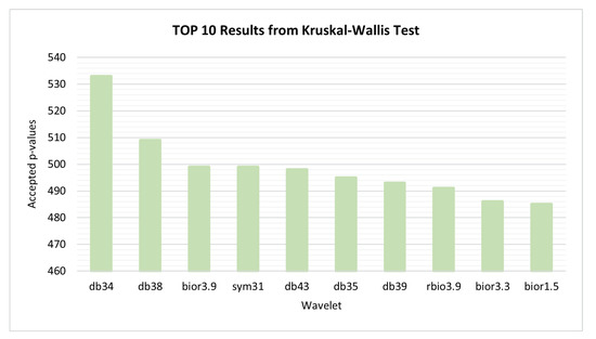 Kruskal–Wallis test—10 best performances achieved by wavelets.