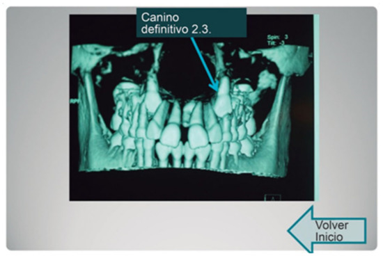 In parallel, using the tridimensional images of the jaw, we designed the interactive templates with hyperlinks, so that the student could navigate and choose an option for each assumed clinical scenario, in order to define a more precise diagnosis as a result of identifying anatomical structures (Figure 2).