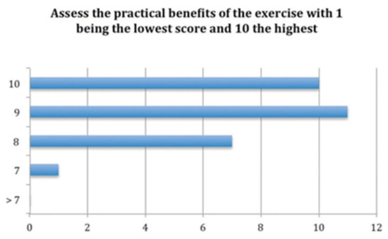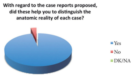 Over the total number of the students, almost all of them (28 of 29) answered that this tool helped them to distinguish the anatomical structures (Figure 9), and the score of the clinical tool based on the 3D model was 8.5 out of 10 (Figure 10). The open answer question will be important in order to help us improve the tool for the students (Table 1).