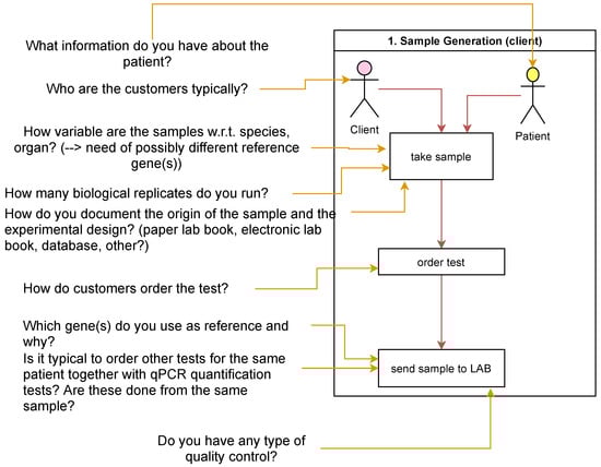 Based on the results of the literature review, an initial interview was then conducted in writing with the head of the laboratory (RG-O4). Questions were chosen to understand the scope of activities in the laboratory, to compare the results of the literature review with laboratory practice, and to understand practical requirements. This includes questions about the type of analyses performed, the hardware and software used, initial questions about the sequence of analyses, and quality control measures. Examples of these questions are: (1) What hardware and software do you currently use for gene expression analysis?, (2) How many samples/genes do you process currently at the same time?, (3) How many do you plan to process in the future?, (4) What kind of analysis do you perform on the quantification data?, (5) How do you evaluate the statistical significance of results?, and, (6) What kind of meta-analysis, spanning multiple runs, do you regularly conduct?