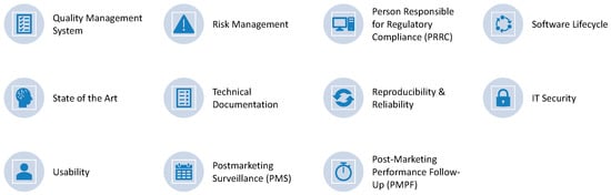 As soon as software is to be deployed in patient management and in particular for diagnostics, it is also usually subject to certain legal regulations or even has to be certified by corresponding bodies. In the European Union, for example, this is stipulated in the IVDR (In Vitro Diagnostics Regulation) [11]. Normative international standards include IEC 62304 [12], which specifies software lifecycle requirements, or ISO 15189 [13], which specifies general requirements for medical laboratories. Not only do these standards specify generic requirements like, e.g., the use of quality management systems, IT security, or usability, they also require that all steps in the software lifecycle and the system design are documented thoroughly. Hence, the software lifecycle does not end with development but includes continuous tasks like PMS (Post-Marketing Surveillance) and PMPF (Post-Marketing Performance Follow-Up).