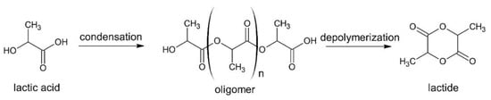 - Noda, M.; Okuyama, H. Thermal Catalytic Depolymerization of Poly(L-Lactic Acid) Oligomer into LL-Lactide: Effects of Al, Ti, Zn and Zr Compounds as Catalysts. Chem. Pharm. Bull. 1999, 47, 467–471. [Google Scholar] [CrossRef] [Green Version]