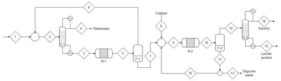 - Park, J.; Cho, H.; Hwang, D.; Kim, S.; Moon, I.; Kim, M. Design of a Novel Process for Continuous Lactide Synthesis from Lactic Acid. Ind. Eng. Chem. Res. 2018, 57, 11955–11962. [Google Scholar] [CrossRef]