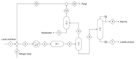 - Heo, S.; Park, H.W.; Lee, J.H.; Chang, Y.K. Design and Evaluation of Sustainable Lactide Production Process with an One-Step Gas Phase Synthesis Route. ACS Sustain. Chem. Eng. 2019, 7, 6178–6184. [Google Scholar] [CrossRef]