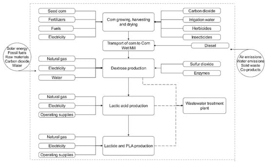 - Groot, W.J.; Borén, T. Life Cycle Assessment of the Manufacture of Lactide and PLA Biopolymers from Sugarcane in Thailand. Int. J. Life Cycle Assess. 2010, 15, 970–984. [Google Scholar] [CrossRef]