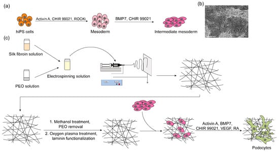 - Burt, M.; Bhattachaya, R.; Okafor, A.E.; Musah, S. Guided differentiation of mature kidney podocytes from human induced pluripotent stem cells under chemically defined conditions. JoVE (J. Vis. Exp.) 2020, e61299. Available online: https://www.jove.com/t/61299/guided-differentiation-mature-kidney-podocytes-from-human-induced?utm_source=joveglobal&utm_medium=twitter&utm_campaign=podocyte (accessed on 9 April 2022). [CrossRef]