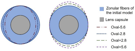 - Cabeza-Gil, I.; Grasa, J.; Calvo, B. A validated finite element model to reproduce Helmholtz’s theory of accommodation: A powerful tool to investigate presbyopia. Ophthalmic Physiol. Opt. 2021, 41, 1241–1253. [Google Scholar] [CrossRef]
