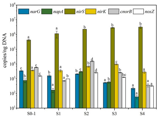 - Chon, K.; Chang, J.S.; Lee, E.; Lee, J.; Ryu, J.; Cho, J. Abundance of denitrifying genes coding for nitrate (narG), nitrite (nirS), and nitrous oxide (nosZ) reductases in estuarine versus wastewater effluent-fed constructed wetlands. Ecol. Eng. 2011, 37, 64–69. [Google Scholar] [CrossRef]