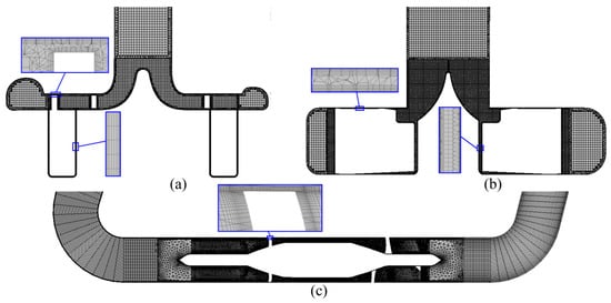Mesh of the studied VADs: (a) CH-VAD; (b) HVAD; and (c) HM II.