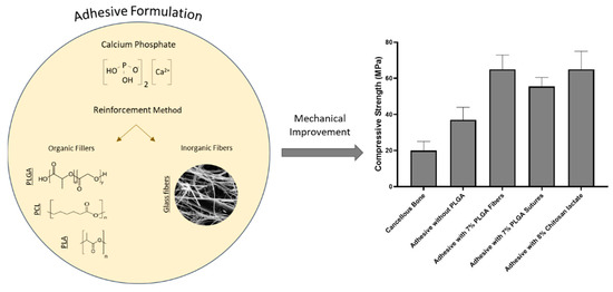 - Kirillova, A.; Nillissen, O.; Liu, S.; Kelly, C.; Gall, K. Reinforcement and Fatigue of a Bioinspired Mineral–Organic Bioresorbable Bone Adhesive. Adv. Healthc. Mater. 2021, 10, 2001058. [Google Scholar] [CrossRef] [PubMed]