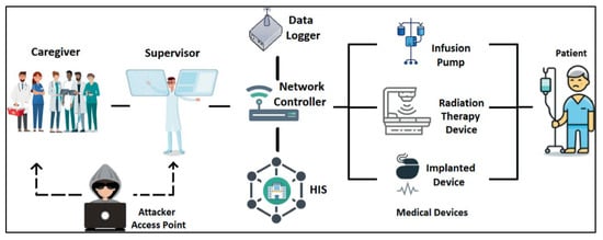 - Ibrahim, M.; Okasha, H.; Elhafiz, R. Security analysis of integrated clinical environment using attack graph. In Intelligent Sustainable Systems; Springer: Singapore, 2022; pp. 75–83. [Google Scholar]