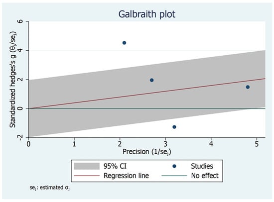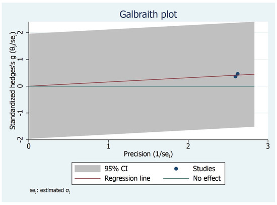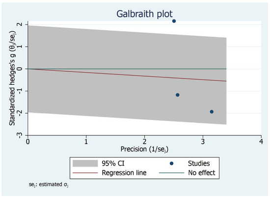 Galbraith Plot for MMO Outcome illustrating heterogeneity of the studies and detecting potential outliers. Two studies identified as an outlier.