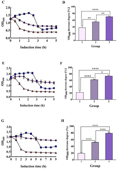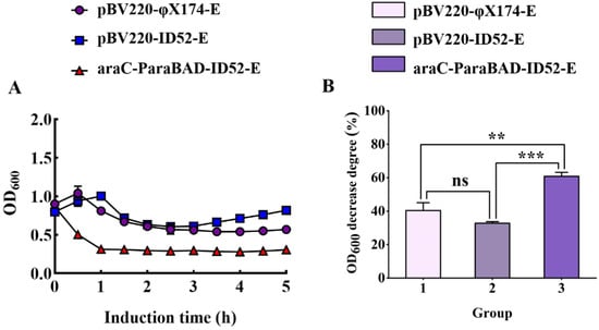 3.2. Lysis Activity of Protein φ174-E and ID52-E in E. coli BL21(DE3)