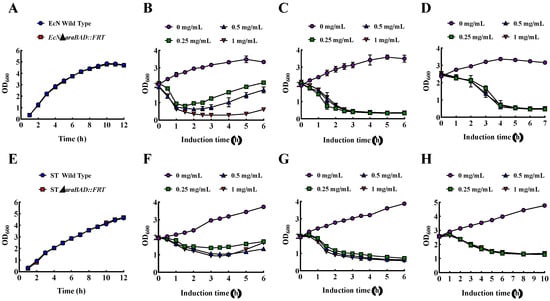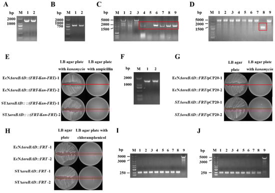 2.7. Construction of EcN with araBAD Deletion Mutation and ST with araBAD Deletion Mutation
