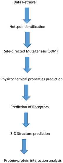 Before the commencement of in silico site-directed mutagenesis, essential amino acids have to be identified. The Knowledge-based FADE and Contacts (KFC) Server ((accessed on 2 February 2019) was employed for the precise identification of hotspot residues or mutation-sensitive residues to perform in silico site-directed mutagenesis effectively (Figure 2). The KFC Server uses two predictive models, shape specificity features and biochemical contacts, to display the hotspots’ predictive accuracy in identifying mutation-sensitive amino acid residues [18].