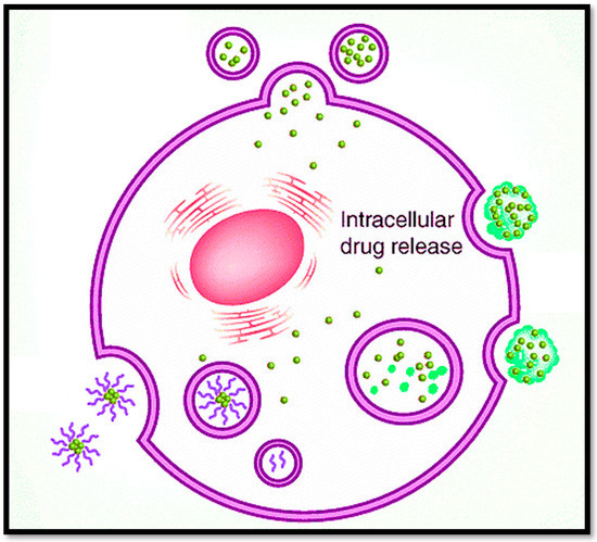 Nanotechnology-based immunotherapy agents have been employed for multiple cancer types to shrink the malignant cancerous cells and preserve the benign cells at the target spot [63,64,65,66,67]. To overcome the insufficient specificity of conventional BC treatments, passive targeting and active targeting using nanomaterials to boost tumor drug levels and reduce noncancer drug levels are being explored as potential alternatives. It has been established that undesirable pharmacokinetics, including quick clearance from the body and short half-life, can be overcome via functionalizing (i.e., PEGylation) of NPs. Dose-limiting toxicity of the chemotherapeutic drugs can be resolved via developing nanocarriers with controlled drug release at tumor sites. While increased drug efflux via cell membrane transports transport can cause drug resistance, some NPs acting as passive/active targeting therapeutic agents can inhibit drug efflux mechanisms, and, therefore, enhance endocytosis of the cargo. More importantly, drug resistance in the tumor microenvironment (TME) due to lower pH or hypoxia can be addressed via the development of stimulus-responsive nanoformulations (i.e., pH-responsive nanosystems) [68].