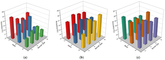 Accuracy comparison between different kernel sizes and ratio in CBAM block on EEGNet Block 1 (a), EEGNet Block 2 (b), and EEGNet Block 3 (c).