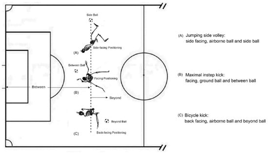 Soccer is the most popular sport in the World. Based on the information from Fédération Internationale de Football Association (FIFA), the game is played and watched on five continents with 265 million players and 4 billion fans, i.e., over 50% of the world population (7.7 billion) are linked to the game [,,]. Yet, contrary to the popularity of the game, the number of scientific inquiries on key motor control skills, i.e., soccer scoring techniques (SSTs), appears disproportionately low when compared to the participation-to-scientific study ratios of other sports skills, such as complex gymnastics skills []. As a result, the scientific understanding of SSTs lags far behind its practice, with most participants acquiring various SSTs through individual experience rather than science-based instruction [,]. To make the matter worse, there is a dearth of scientific investigation on the many complex SSTs, such as the jumping turning kick, e.g., a nominated goal for the FIFA Puskás Award 2019, performed by Ibrahimović [] and the diving scorpion kick, which won the FIFA Puskás Award 2017 []. These SSTs seem virtuosic in scope and are commonly believed to be the talent ability solely of soccer stars []. Obviously, relying on the aptness of the athletes to improve these virtuosic SSTs can hardly be considered a viable learning or coaching strategy. Worst of all, the terms surrounding SSTs used in practice and research have been confusing []; researchers and practitioners are not sure how many SSTs are available for the game. This scenario hinders not only the scientific studies on many exceptional SSTs but also the development of novel coaching methods for learning these SSTs.