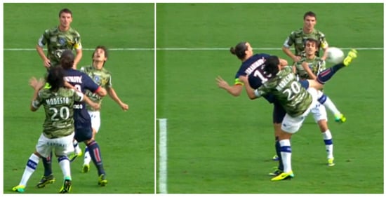 Figure 5. The scorpion kick, a nominated goal of FIFA Puskás Award 2014 performed by Ibrahimović (the figure was generated from the video of FIFA Puskás Award 2014).