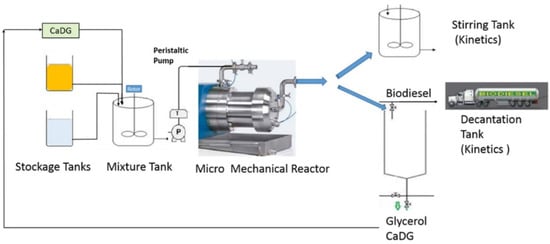 Schematic representations of a semi-continuous flow reactor for biodiesel production. Adapted from [,].