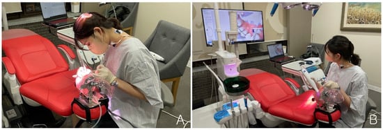 In dental clinical practice, the use of a dental unit chair system (UCS) is essential for patient diagnosis and treatment [,]. Dentists spend most of their work time in the dental UCS for patient care []. The dental UCS consists of an operating light and a patient seat, foot controller, water fountain and cuspidor, monitor, bracket table, and dentist’s chair []. In addition, the dental UCS has been developed to facilitate the use of various dental medical devices and treatment tools [,].
