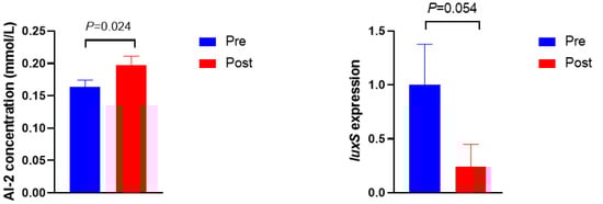 3.2. AI-2 Concentration and luxS Gene Expression